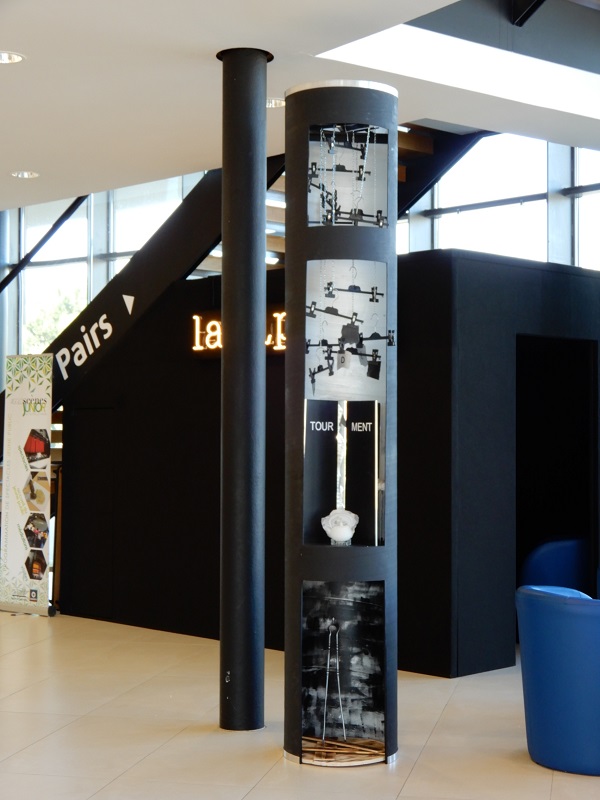 À TOUR DEUX RÔLES dans le cadre de l'ouverture de la saison théâtrale À Tour deux rôles : entre poésie en théâtre, autour d'une œuvre d'un auteur programmée pour la saison 2017/2018 "Dans la solitude des champs de coton" de Bernard Marie Koltès. Dim. d'une tour : haut.3,00 m x diam.0,50 m |